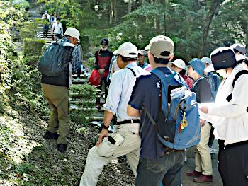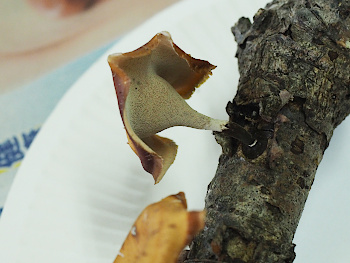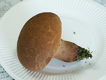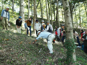 | 7.急坂をものともせず登りきり、きのこを採取しました。足腰の強さとバランス感覚の良さに驚かされ、周りの大人たちが拍手喝采でした。 |