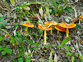 | 15.坂の中途にタマゴタケが群生しています。皆さん順番に撮影されていました |