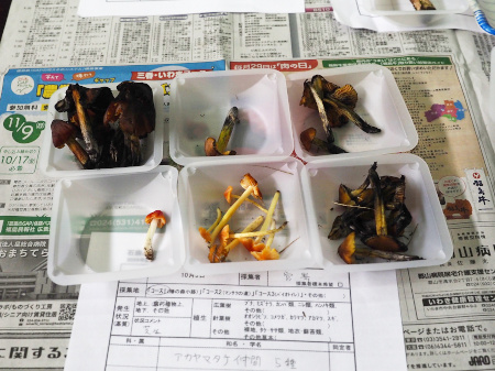 | 以下はきのこ同定会場に提出されたきのこの一部と、安藤氏らによる解説の画像の一部です | ||