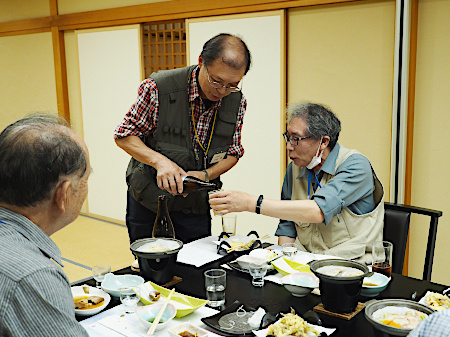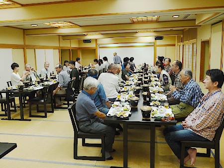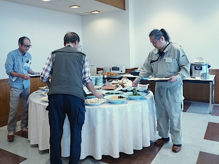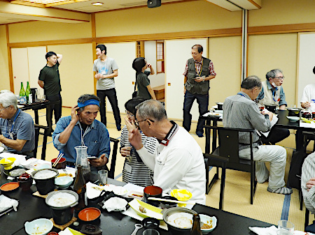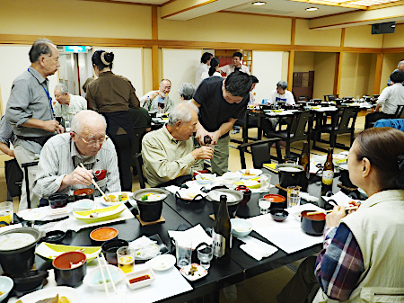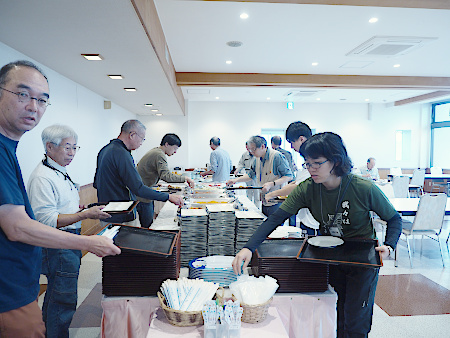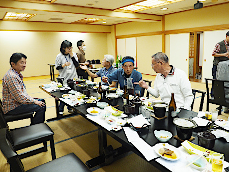 | 以下は翌日(10月5日)の朝食風景と採取出発前の集合写真です | ||